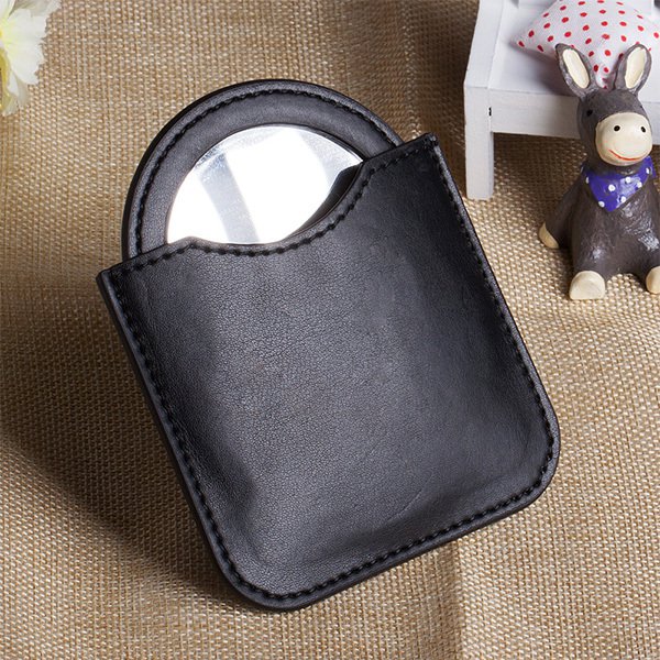 1. 圓形卡片式PU皮革隨身鏡,精緻小巧,方便攜帶,適合女性隨身使用。