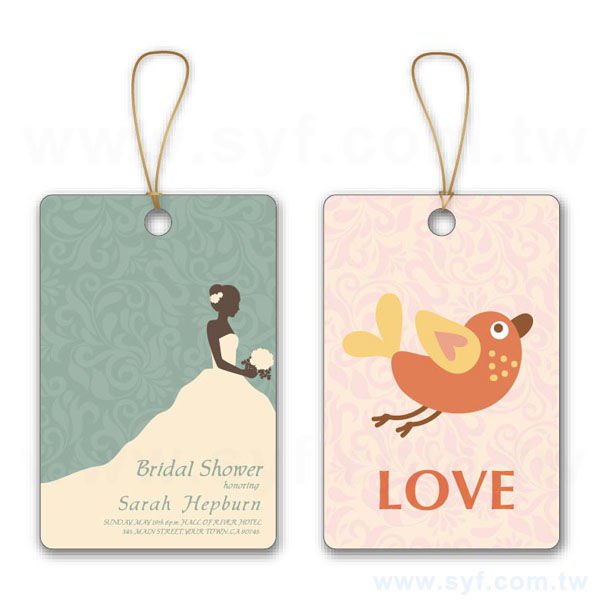 1. 方型吊牌尺寸26x39mm,適用於公司禮贈品或商品標示。選擇200g至250g厚度材質,印刷效果清晰。