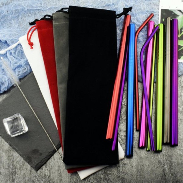 不鏽鋼彩色吸管-4件組吸管組-絨布袋-304不鏽鋼彩色