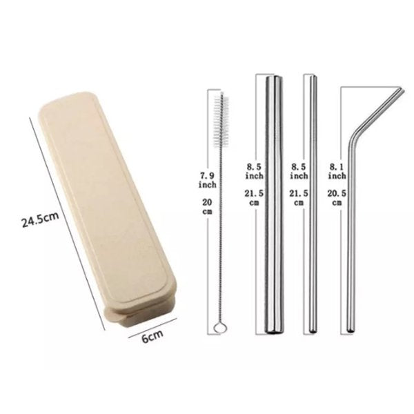 不鏽鋼吸管-4件組吸管組-餐具盒-304不鏽鋼原色