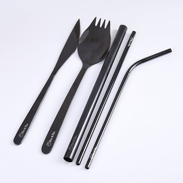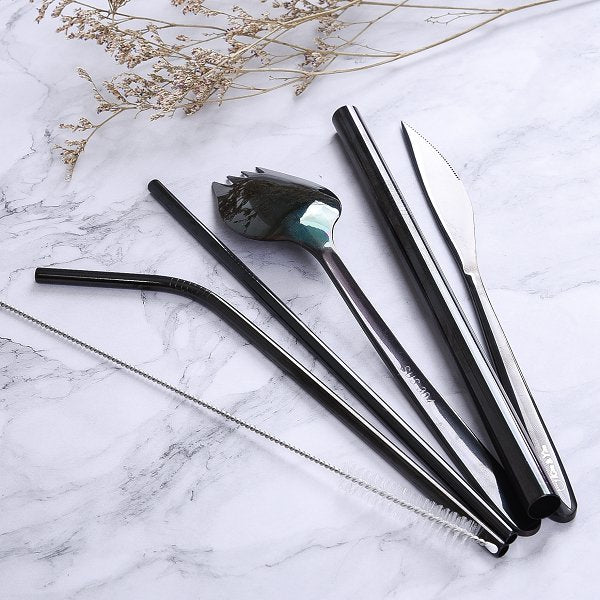 1. 金屬刀叉不鏽鋼吸管組,環保又時尚,適合辦公室、家庭使用。