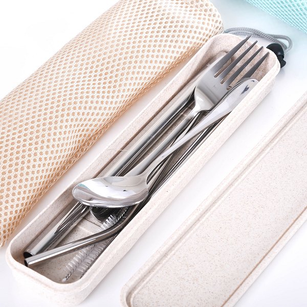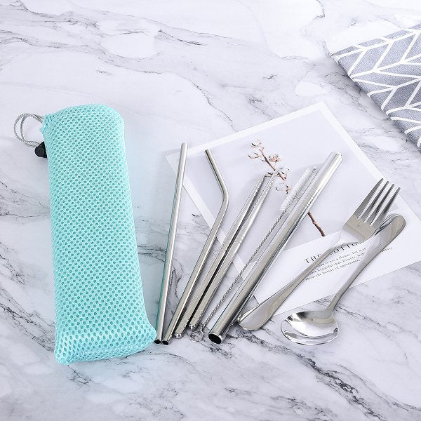 1. 不鏽鋼吸管餐具組,環保時尚,適用辦公室、學校或家庭使用。