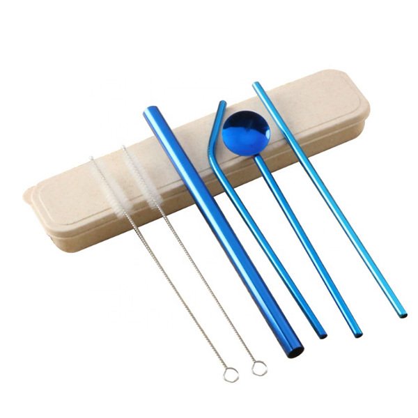 不鏽鋼吸管湯匙-6件組吸管組-小麥盒-304不鏽鋼彩色