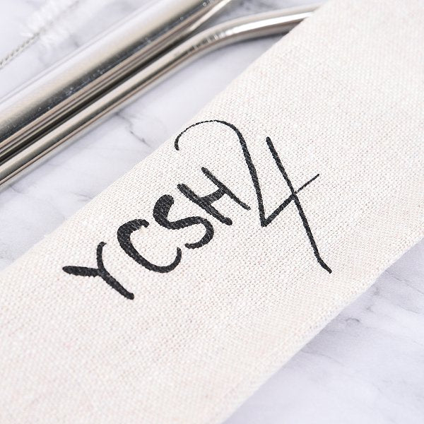 2. 帆布束口袋搭配原色吸管,展現品味與環保理念,尺寸為25*6.5cm。