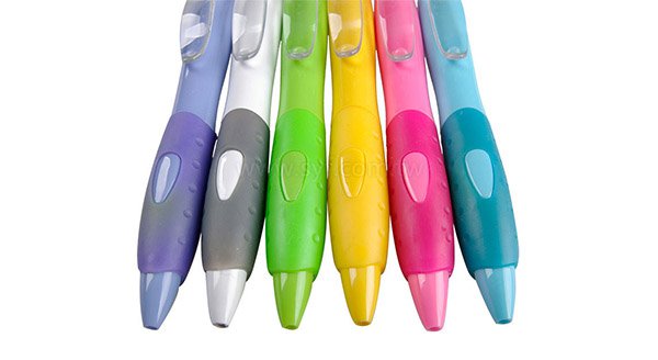 2. 原子筆胖胖曲線造型,人體工學防滑膠套設計,好握不滑溜。