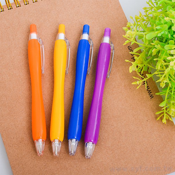廣告環保筆-塑膠小曲線筆管造型禮品-單色原子筆-六款筆桿可選-採購客製印刷贈品筆