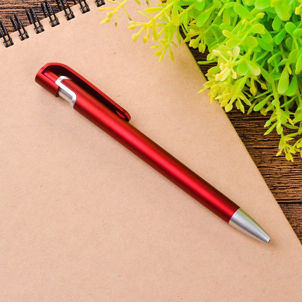 3. 原子筆尺寸14cm,材質為塑膠,顏色為紅色。
