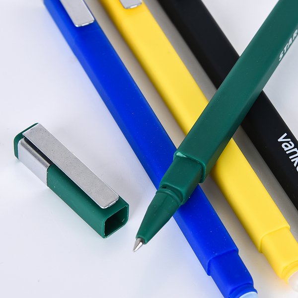 開蓋式擦擦筆-四方霧面噴膠筆管單色原子筆