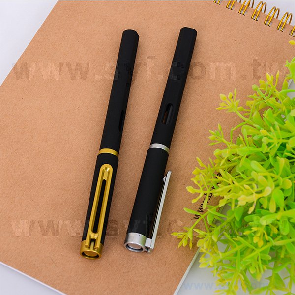 2. 單色中性筆-工廠客製化印刷贈品筆,金屬光澤筆桿現代感十足,墨水特性介於中性和油性之間。