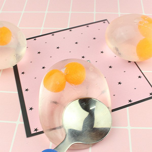 2. 半透明蛋黃減壓球,色彩明亮,手感柔軟,適合放在辦公桌上,隨時按摩放鬆。