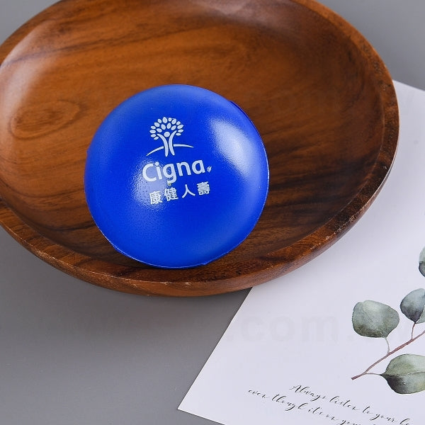 2. 圓球造型發洩球,可客製化禮贈品,白色印刷,藍色底色,簡約時尚。
