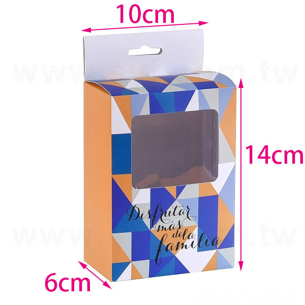 10x6x14cm(尺寸以下均一價)-插底式吊盒加玻璃紙-325P鑽卡紙盒-包裝盒印刷