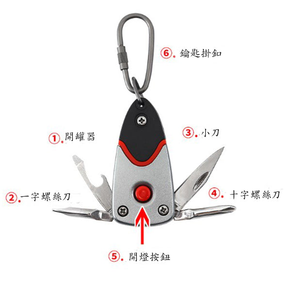 1. 便攜式多功能工具,輕巧方便,適合戶外活動或緊急情況使用。具備LED燈設計,提供光源,讓您在黑暗中也能輕鬆使用。不鏽鋼材質,堅固耐用,保證長期使用無憂。
