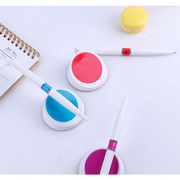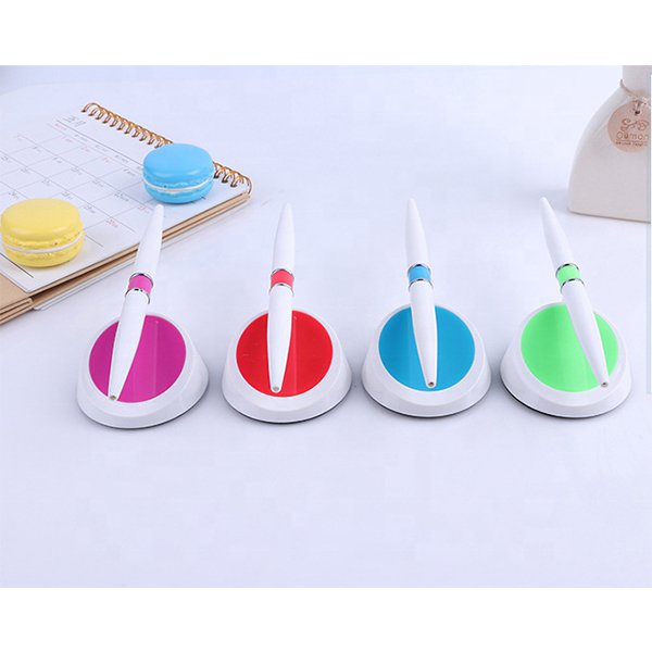 1. ABS彩色圓形底座支架圓珠筆,尺寸為13.8*1.2cm,適合辦公使用。