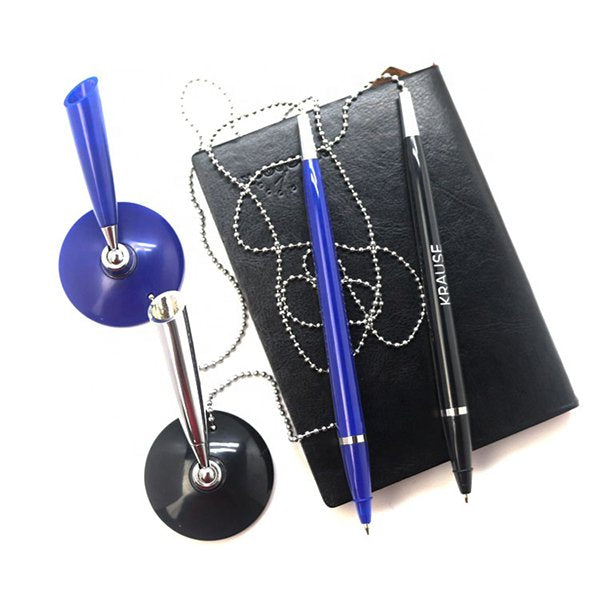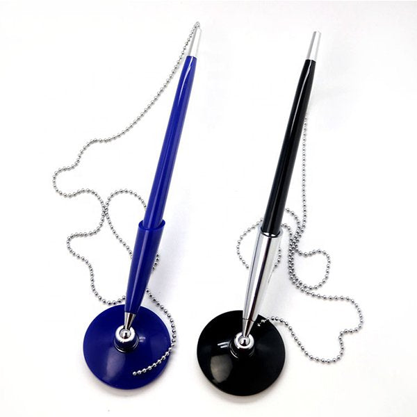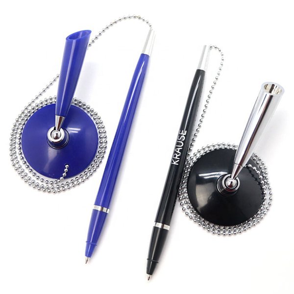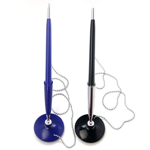 1. 圓形底座珠鍊塑膠櫃檯筆,簡約時尚設計,適合辦公室或商店櫃檯使用,提升空間質感。
