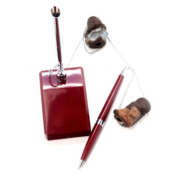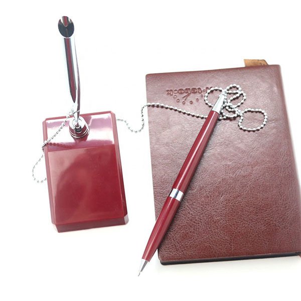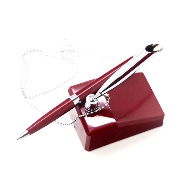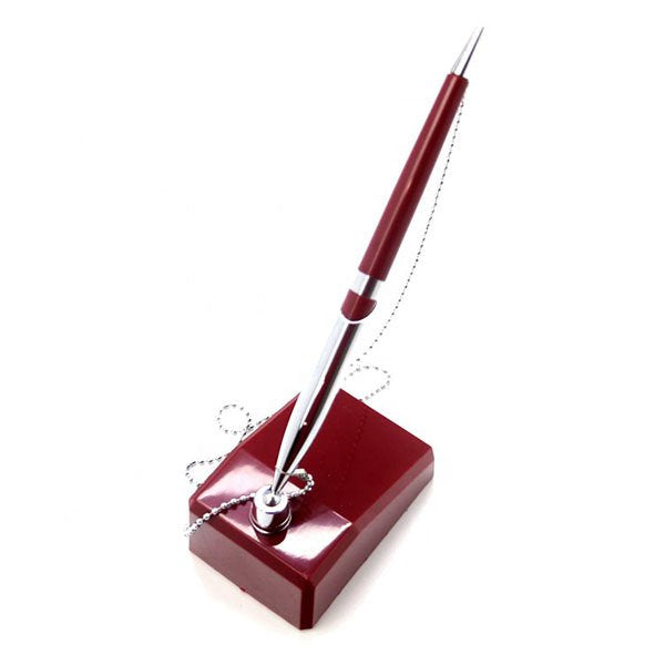 紅色梯形底座珠鍊塑膠櫃檯筆