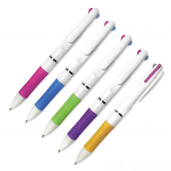 多色廣告筆-三色筆芯白桿防滑筆管-多色原子筆-五款筆桿可選