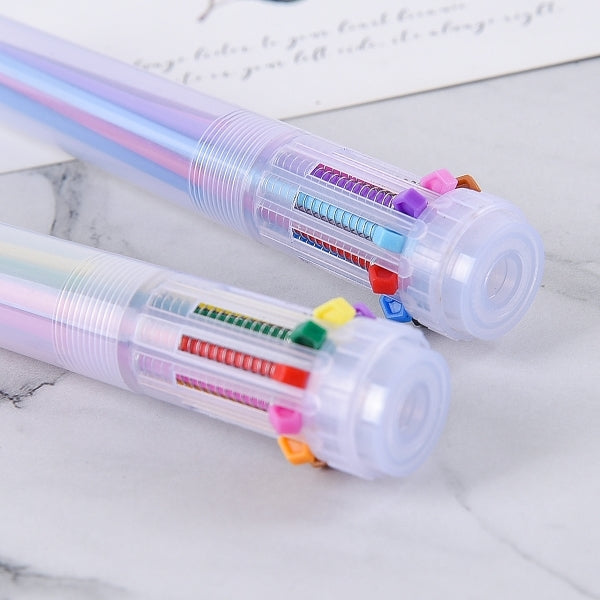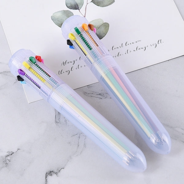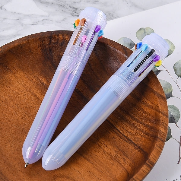 1. 10色透明塑膠粗桿圓珠筆,色彩豐富,適合辦公室、學校等場合使用。