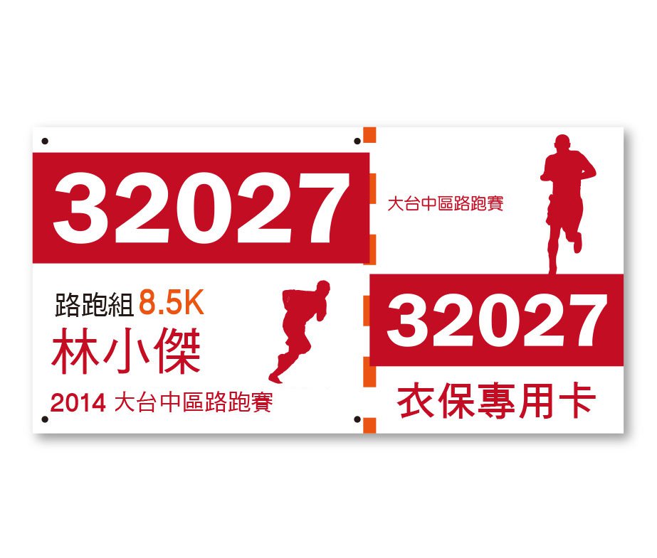 2. 號碼布具有色彩鮮豔、耐磨、不易破、防水不掉墨等特性,可製作高達四種變數資料,適用於各種運動賽事。