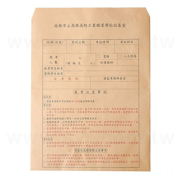 大3K中式80P牛皮紙單面雙色信封-牛皮試卷袋-直式信封印刷