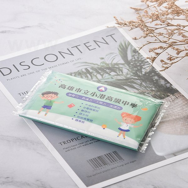 1. 小港高中專屬訂製,108x63mm尺寸,8抽袖珍包廣告面紙包製作,為學校專區帶來活力與亮點。