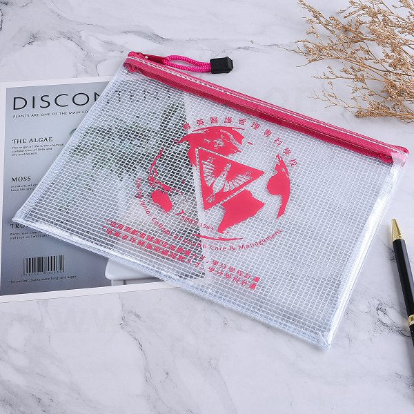 拉鍊袋-一面網格+一面透明PVC(W24xH17cm)-單面單色印刷-學校專區-育英醫專