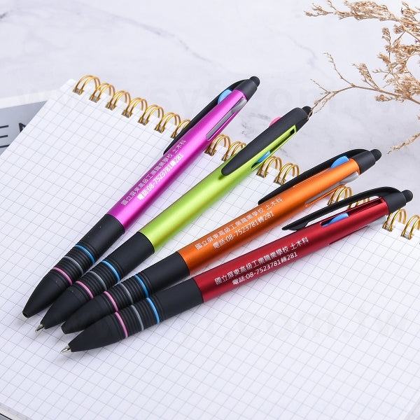 1. 多功能兩用觸控三色筆,適合企業禮贈品,可客製化印刷公司標誌,展現專業形象。