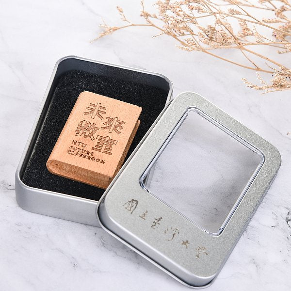 1. 書本造型木製隨身碟,16G容量,可印刷logo,適合作為學校專區禮贈品。