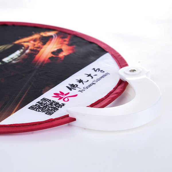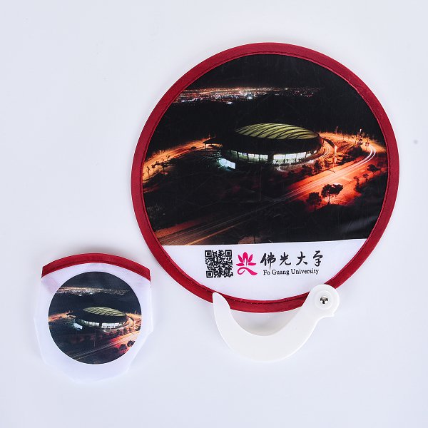 口袋摺疊廣告扇子附把手-尼龍材質飛盤扇附圓型收納袋-可客製化印刷LOGO-學校專區-佛光大學(同60EA-1003)