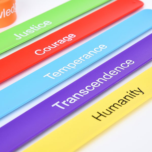 1. 彩色矽膠腕帶尺寸為230*25mm,可單面單色印刷,共有6款風格可選擇。