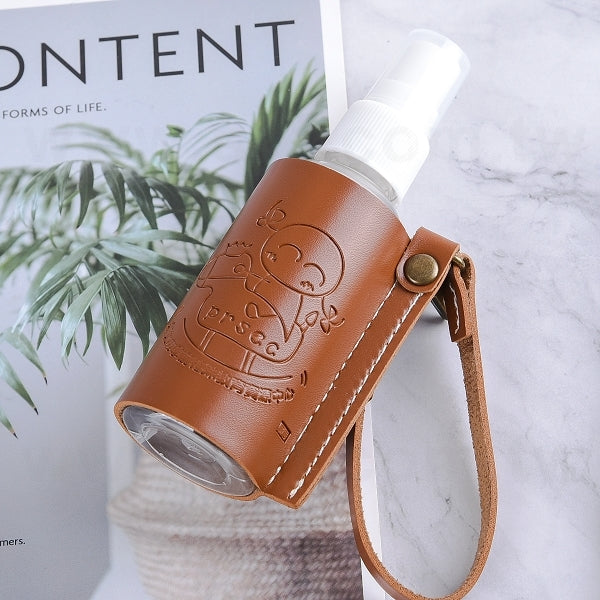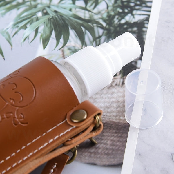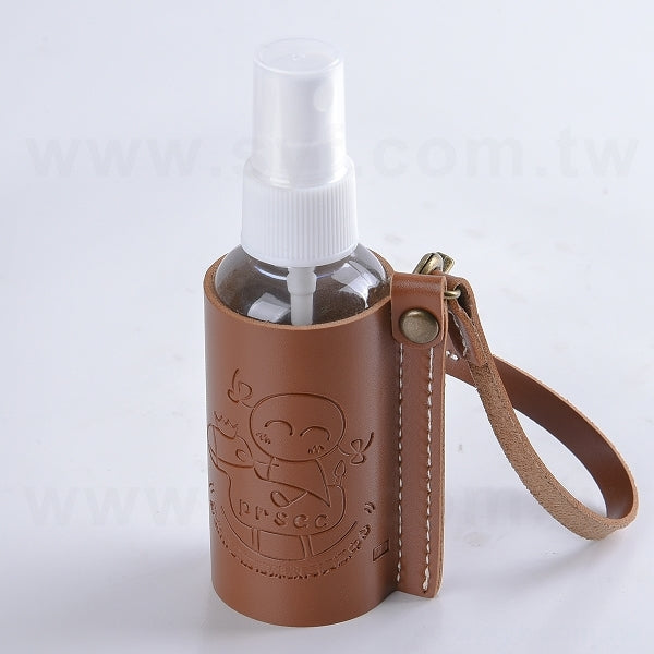 1. 防疫消毒噴霧皮套組,材質為PU皮革套+塑膠噴霧瓶,容量60ML,方便攜帶。