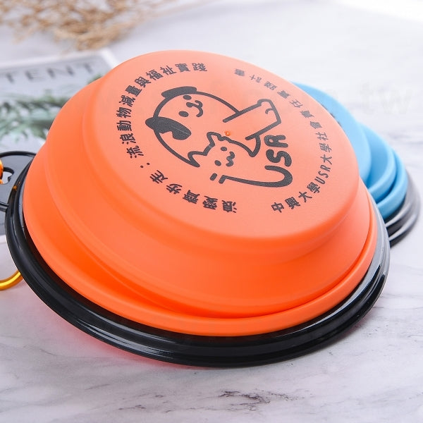 1. 中興大學學生專屬客製化印刷LOGO的折疊寵物碗,方便攜帶,容量350ml,印刷範圍69X94mm,款式藍綠/橘色可選,適合校園使用。