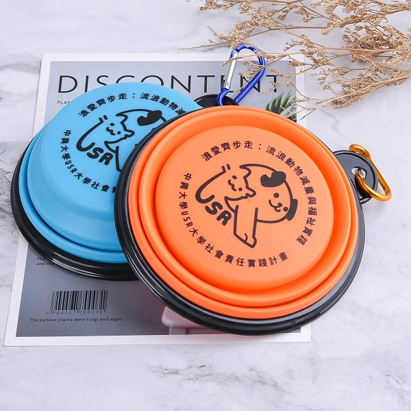 2. 輕巧方便的寵物折疊碗,適用於戶外活動,黑色印刷LOGO展現專屬風格,是中興大學學生們的最佳禮贈品選擇。
