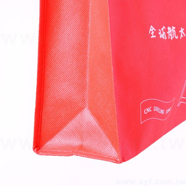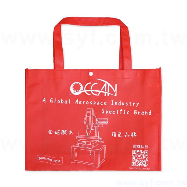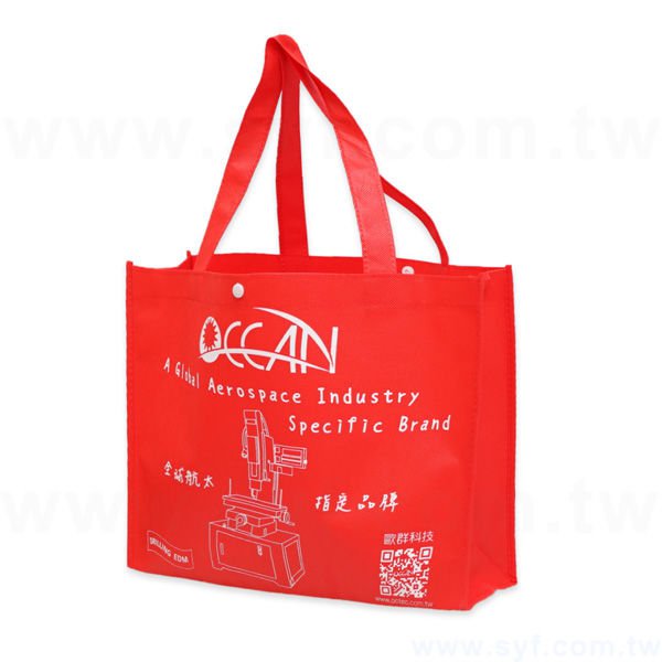 不織布手提立體袋-厚度80G-尺寸W40xH30xD10cm-雙面單色印刷(塑膠扣)