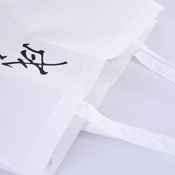 1. 不織布環保購物袋厚度100g,尺寸W45xH35xD10cm,提帶2.5x65cm,雙面雙色印刷。