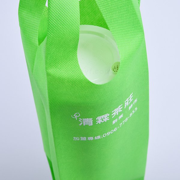 1. 不織布環保購物袋,厚度80G,尺寸W10xH38xD7cm,綠色設計,適合公司活動贈送。