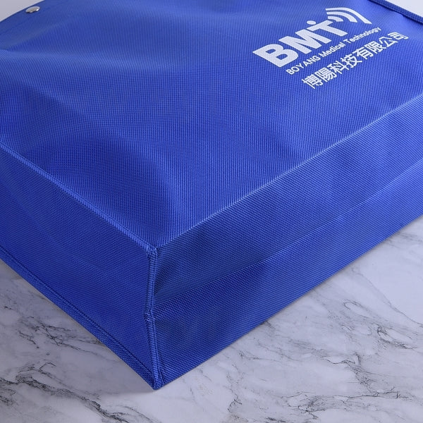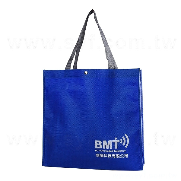 1. 厚度適中的120g不織布購物袋,尺寸為W37XH36XD13公分,適合作為企業活動贈品或禮贈品使用。