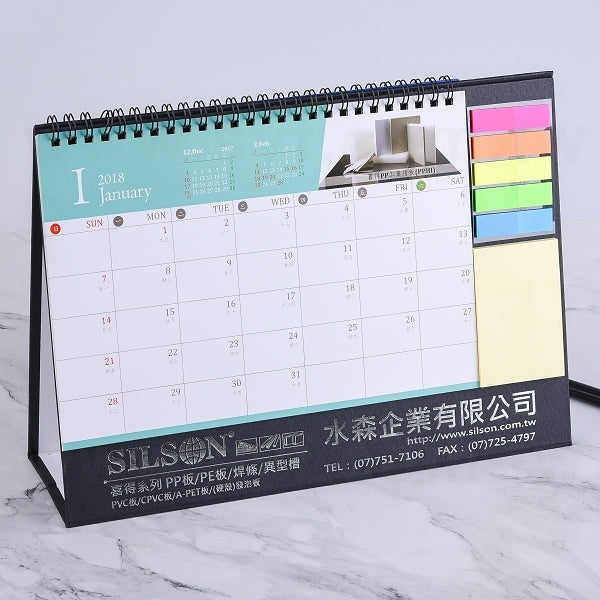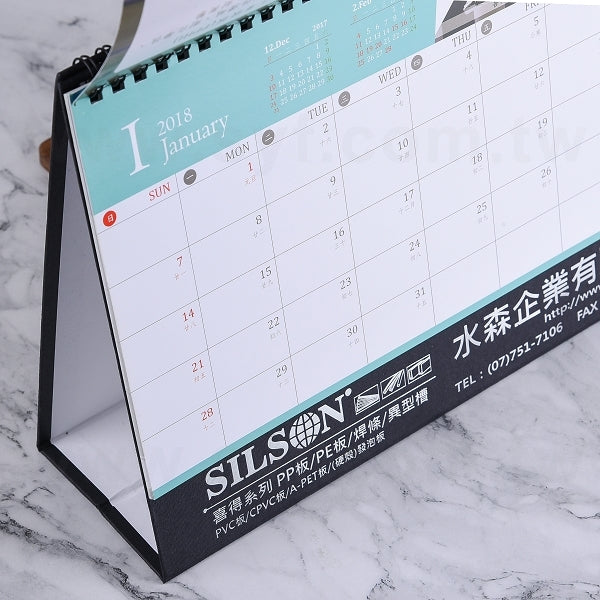 3. 桌曆尺寸為28.5x18.5cm,內頁尺寸為21x15cm,廣告燙金尺寸可客製化設計。