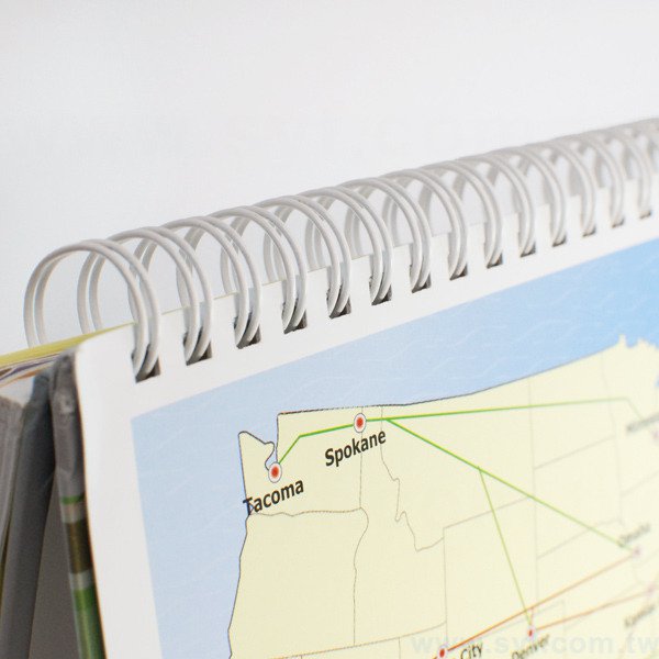 2. 白色鐵質雙線圈設計,讓桌曆更加牢固且易於翻頁。