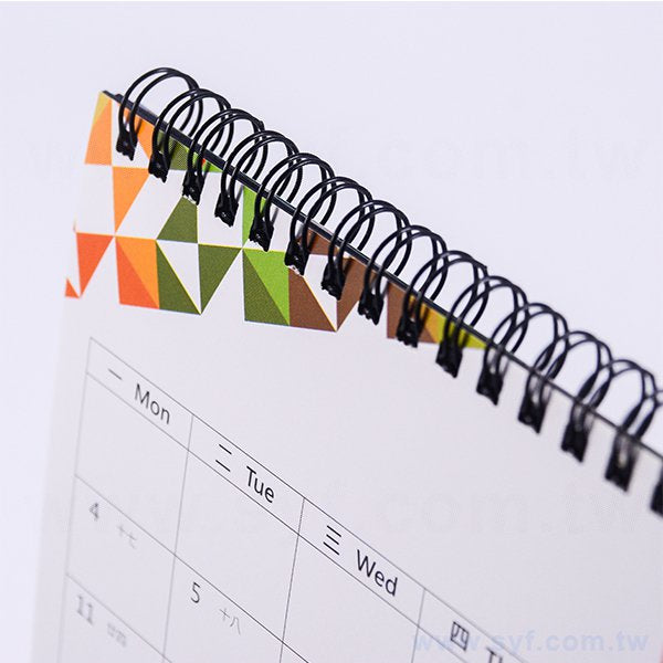 3. 桌曆採用黑色雙線圈裝訂,底座採用黑色美術紙,包裝方式為OPP袋。