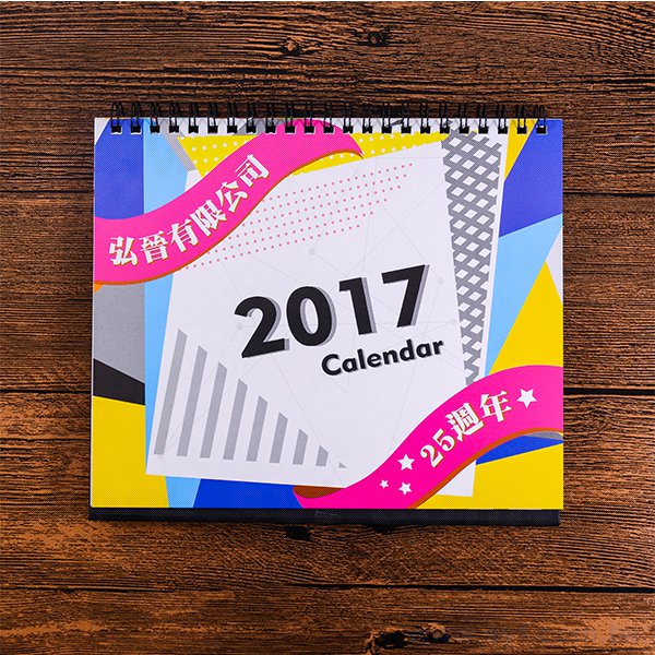 2. 桌曆尺寸為20.5x21cm,印刷方式為雙面彩色,每本13張桌曆紙張為200P銅西。