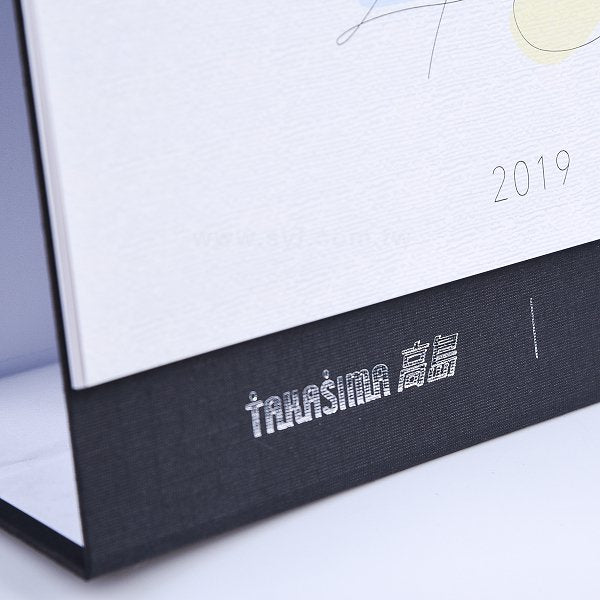 - 桌台:外紙 : 黑色布紋紙 / 裏紙 : 特白道林120p / 單面燙銀