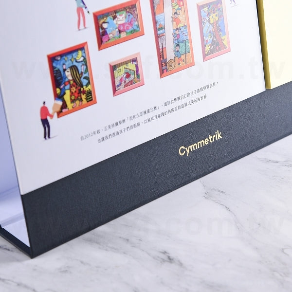 3. 黑色布紋紙展開尺寸32X48公分,內襯120P模造紙,單面燙金燙印。