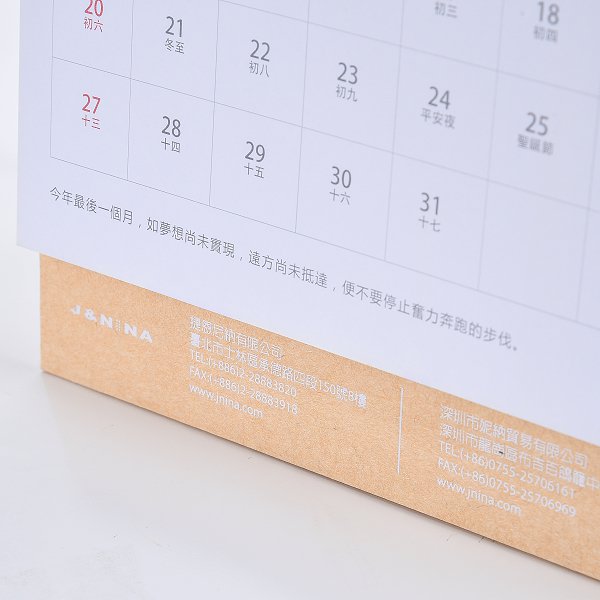 - 桌曆底座:17.8X21X7公分/120P牛皮紙/雙面燙白(不共版)