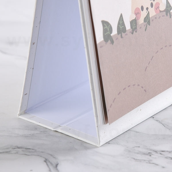 4. 尺寸為21x18.5cm的桌曆底板配有8cm高底座,穩固放置在桌面上。