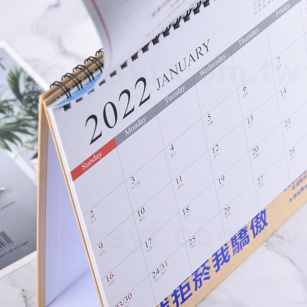 3. 桌檯採用120p牛皮紙,裝訂黑色雙線圈,燙印雙面藍金,精緻耐用。