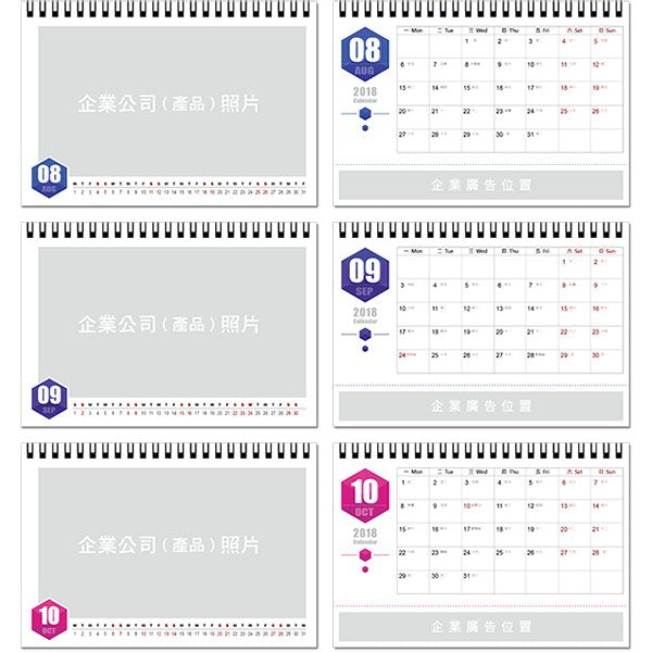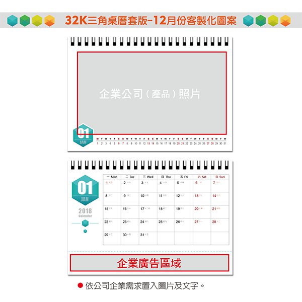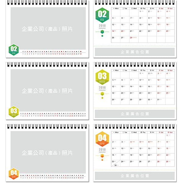 3. 桌曆尺寸18.8x13cm,印刷方式雙面彩色,每本13張。