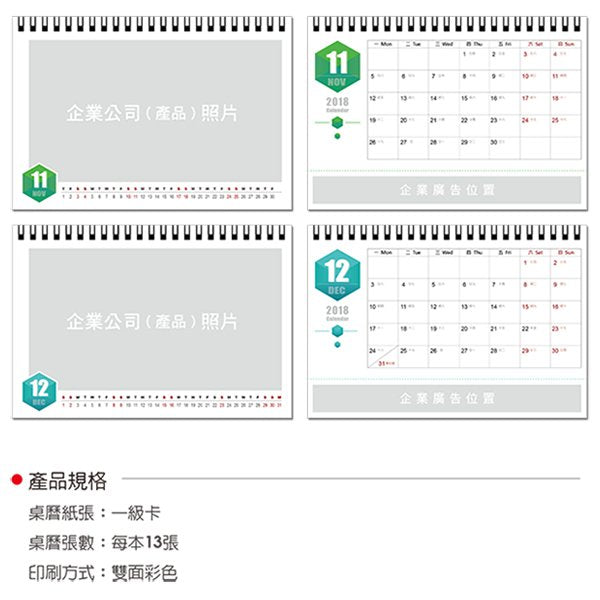 • 桌曆張數:每本13張