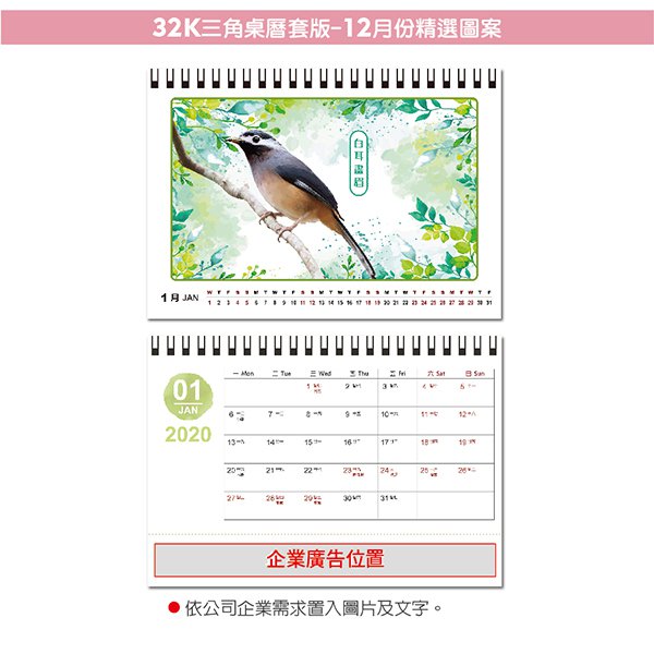 32K桌曆-台灣原生鳥類快速模板推薦-三角桌曆套版少量印刷禮贈品客製化