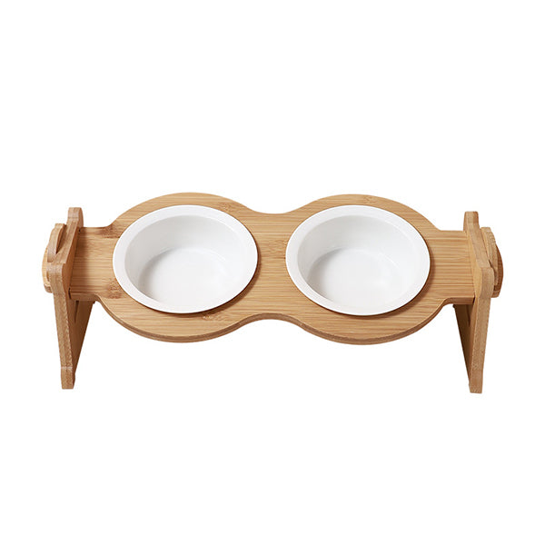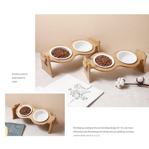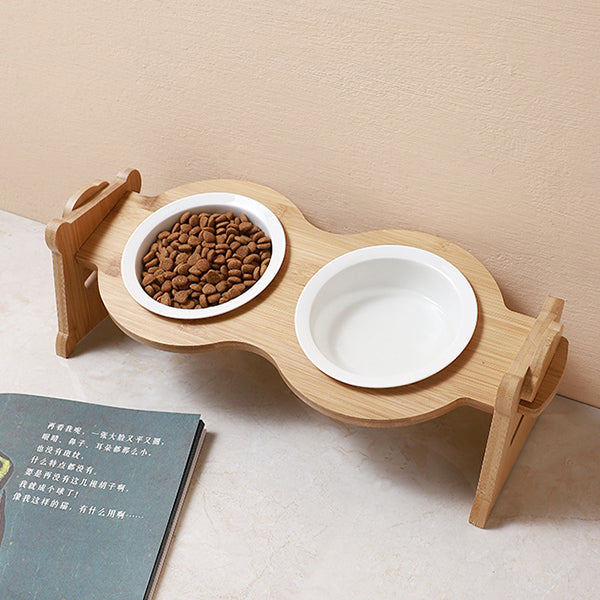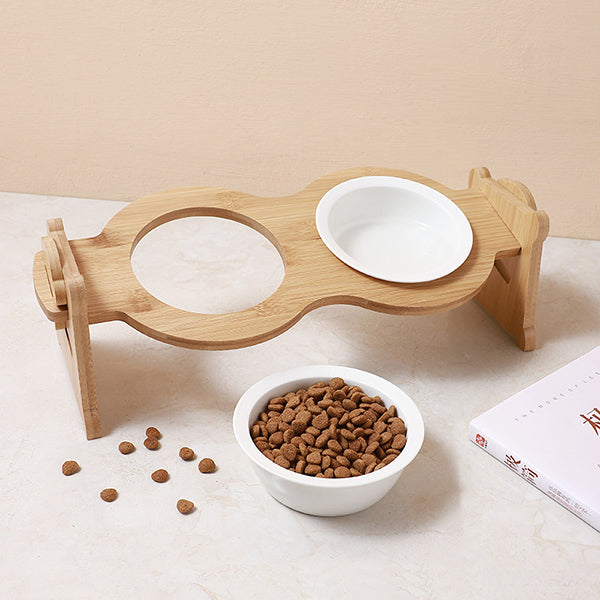 5. 質感優雅的陶瓷碗搭配竹木架,展現主人對寵物的用心和愛護。